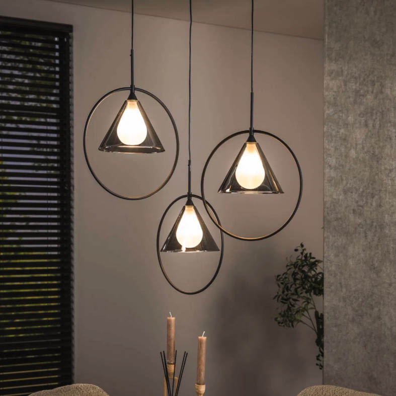Hanglamp Conic getrapt 3-lichts smoke grey
